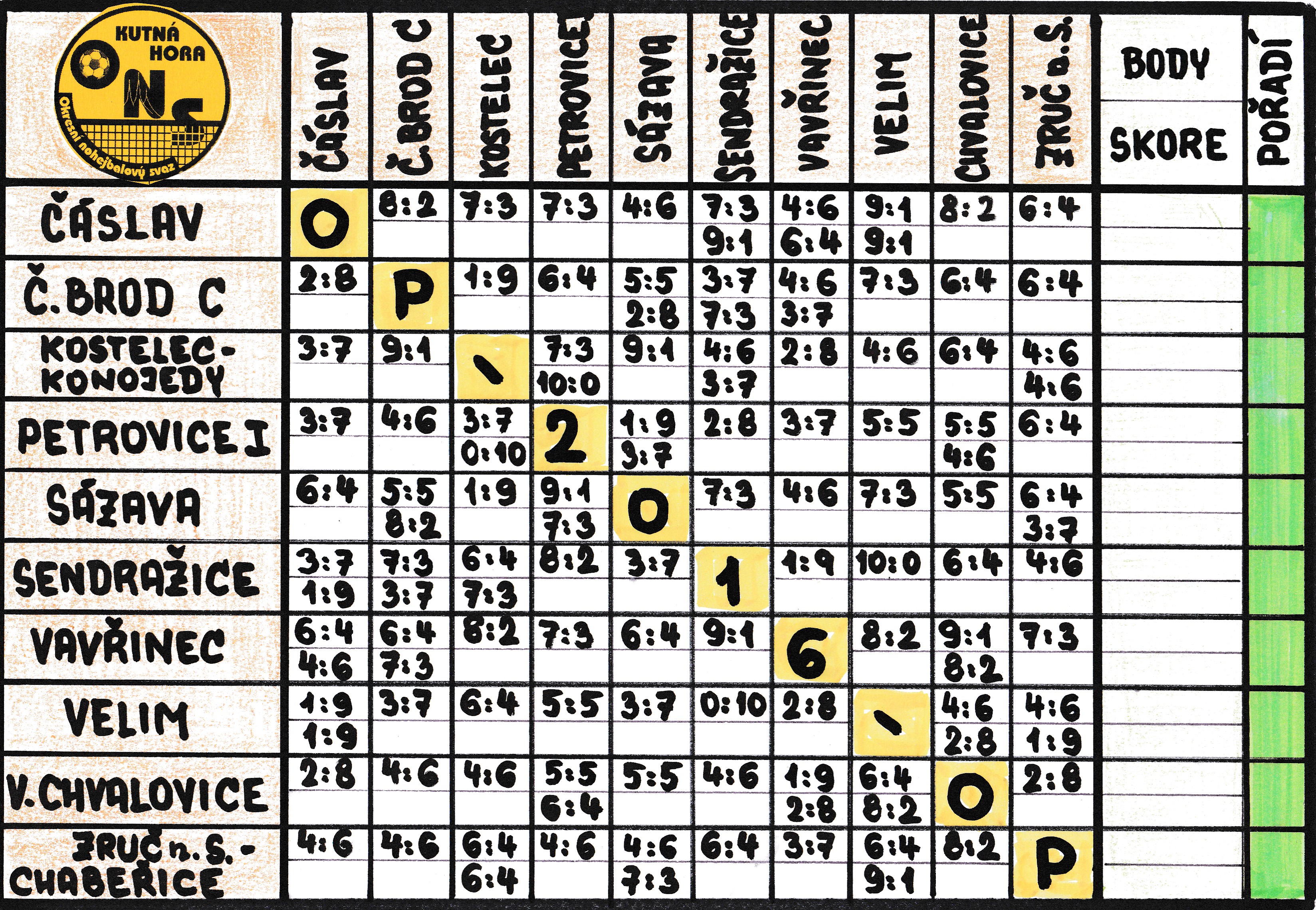 Nohejbalový sdružený okresní přebor (okresy Kutná Hora a Kolín) byl ukončen posledním 18. kolem.