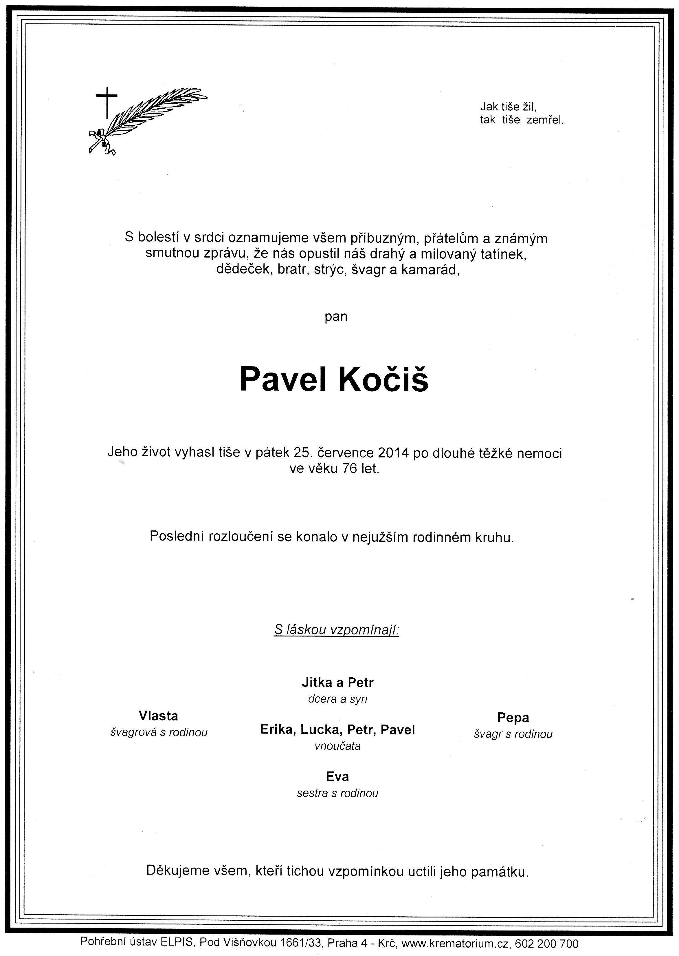 DO NOHEJBALOVÉHO NEBE ODEŠEL PAN PAVEL KOČIŠ